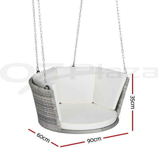 Gardeon Rattan Porch Swing Chair with Chain Cushion Outdoor Furniture Grey