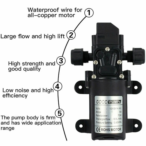 12V Water Pump 6Lpm 70W Self-Priming Caravan Camping Boat 130PSI FAST SHIPPING