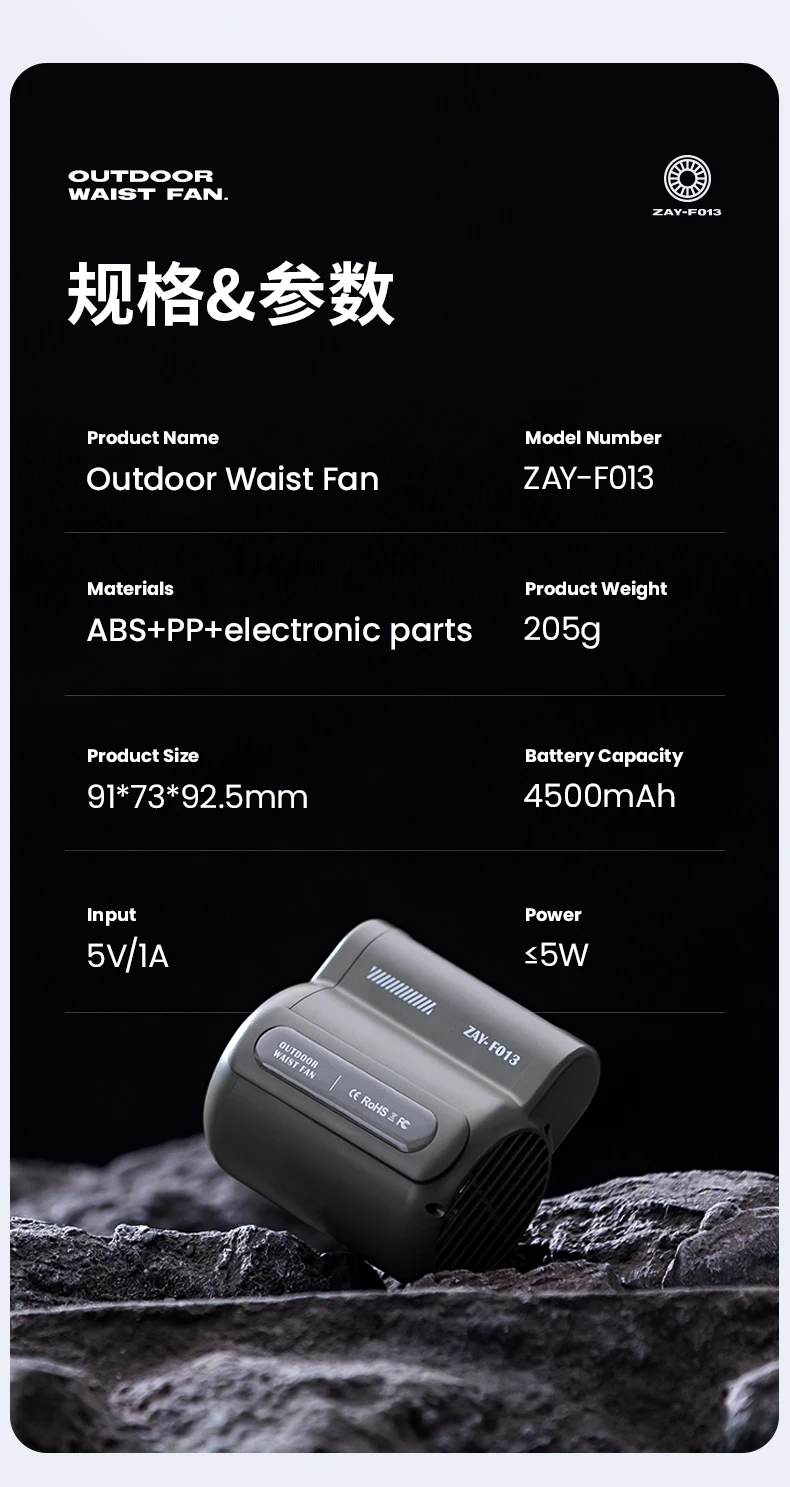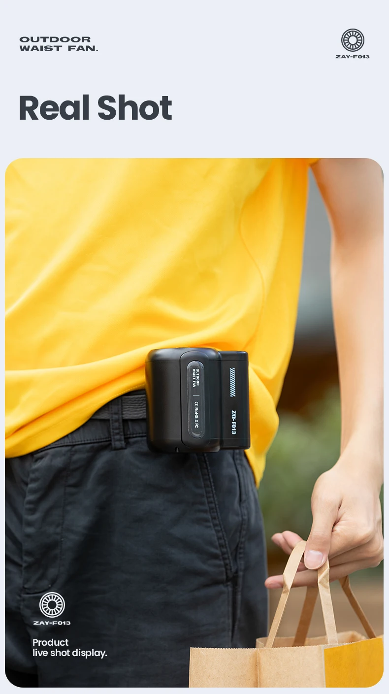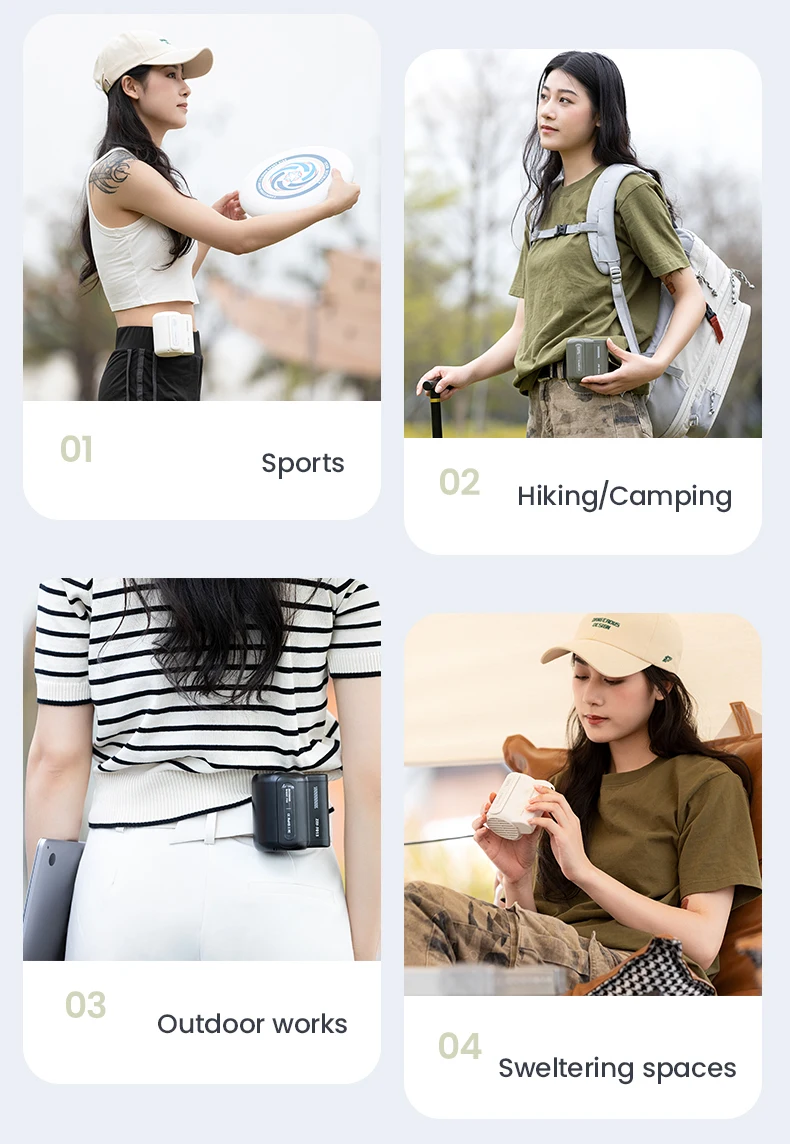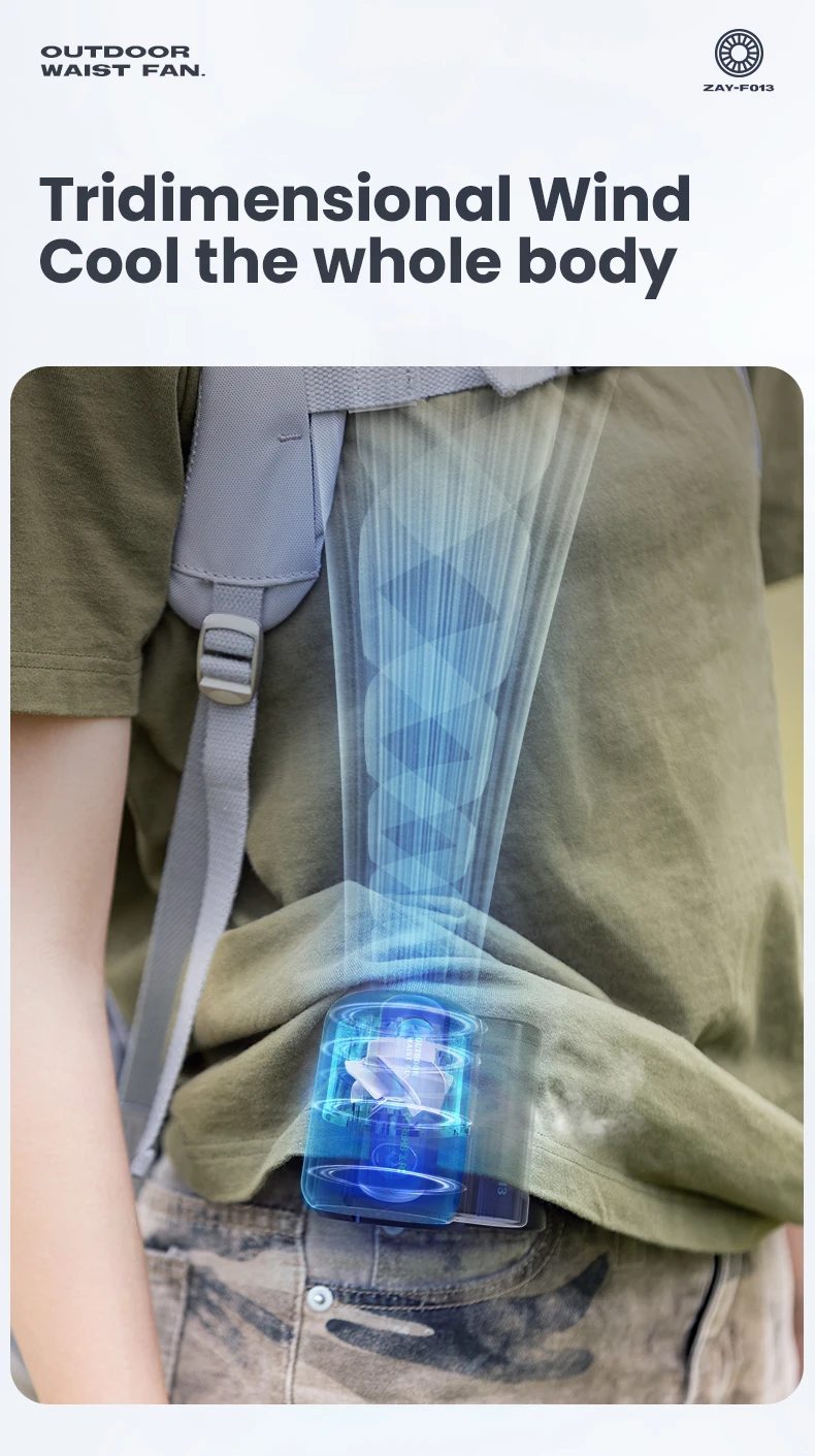 New Camping Leaf Less Waist Mounted Electric Fan for Students Outdoor Handheld Portable Mini Waist Mounted Leaf Less Fan