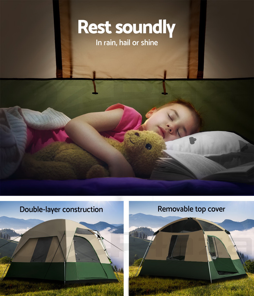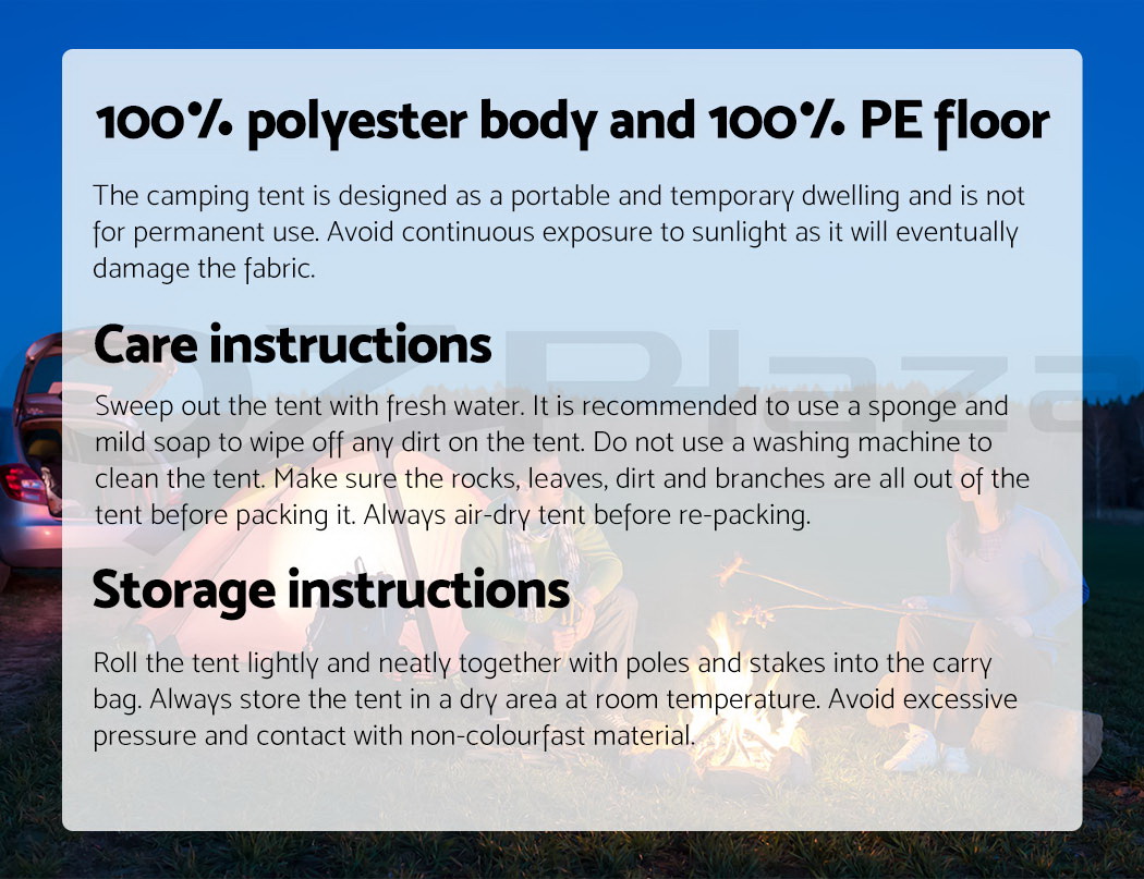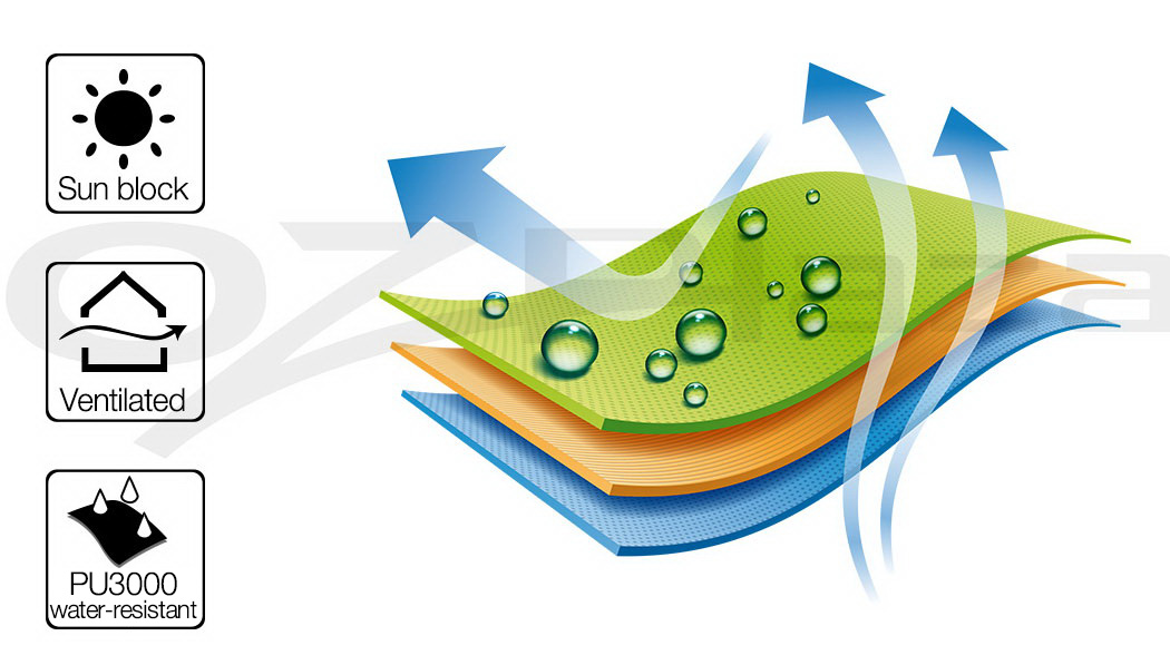 | Fly fabric: 190T Polyester PU3000 |