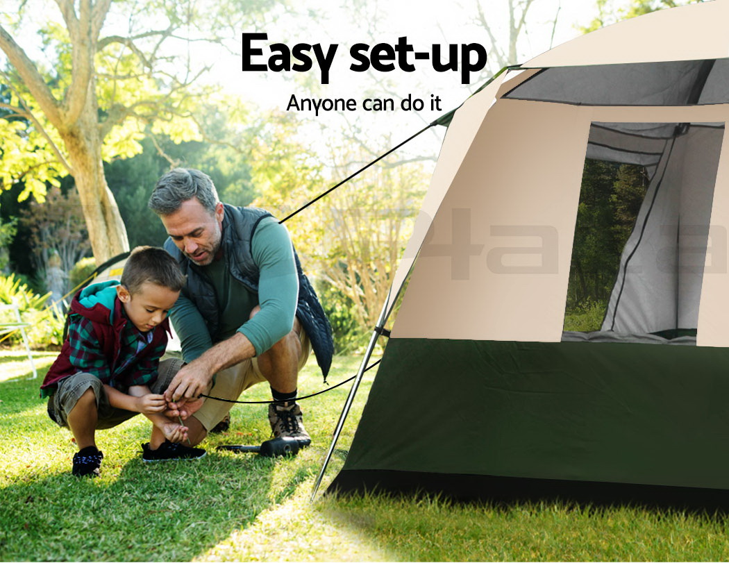 Weisshorn Family Camping Tent 4 Person Hiking Beach Tents Canvas Ripstop Green